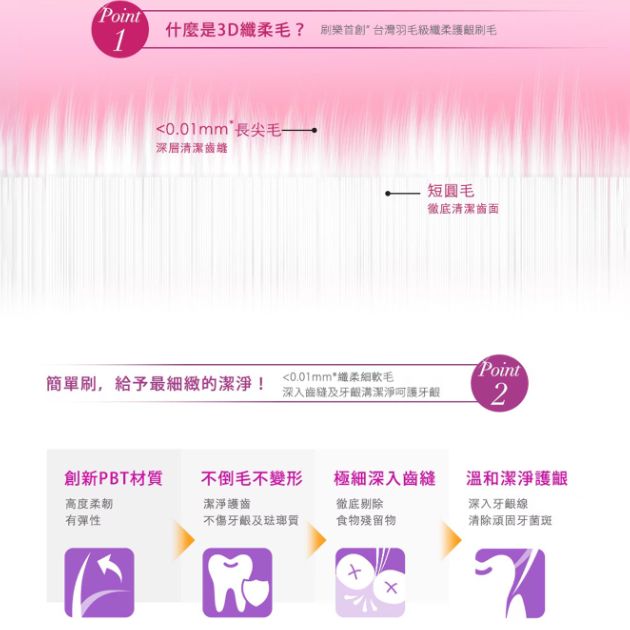 | 材質 | 成人旅行組: 刷毛-PBT(熱塑性聚酯樹脂)、刷柄-(PP+TPE熱塑性彈性塑膠) 兒童旅行組: 刷毛-PBT(熱塑性聚酯樹脂)、刷柄-(PP+TPE熱塑性彈性塑膠) 牙膏-木醣醇、氟化物、香精、界面活性劑、膠粉 |