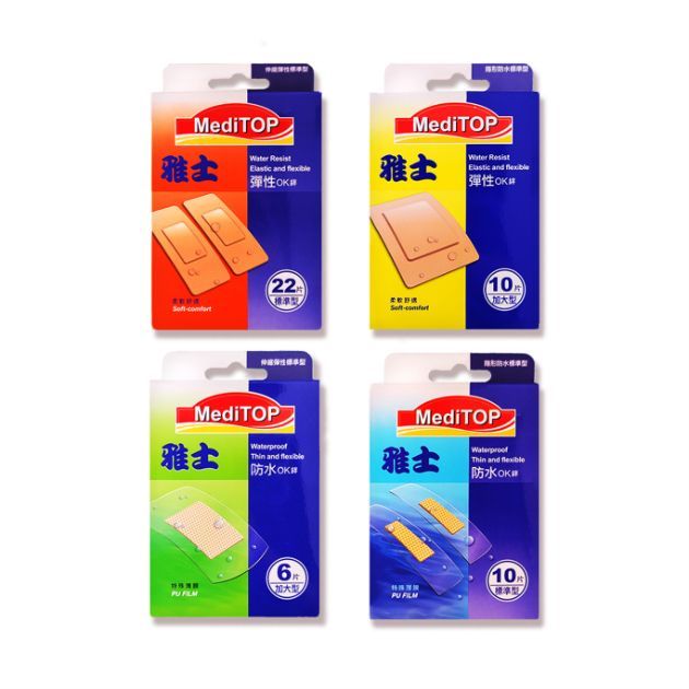 | 材質 | 防水:PU薄膜、護膜紗布、醫療膠 彈性:伸縮彈性布、護膜紗布、醫療膠 |