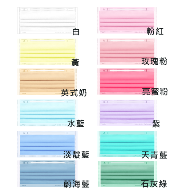 | 顏色 | 黃、白、綠、粉紫、水藍、粉紅、石灰綠、亮蜜粉、天青藍、淡靛藍、玫瑰粉、蔚海藍、英式奶 | |