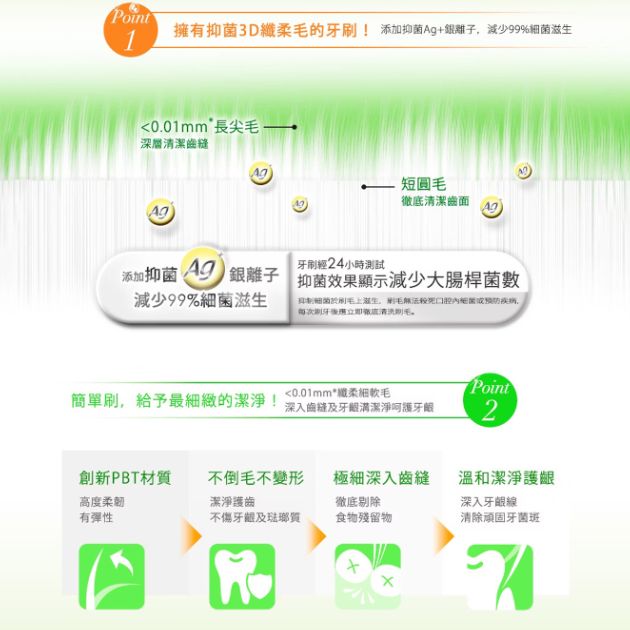 | 材質 | 成人旅行組: 刷毛-PBT(熱塑性聚酯樹脂)、刷柄-(PP+TPE熱塑性彈性塑膠) 兒童旅行組: 刷毛-PBT(熱塑性聚酯樹脂)、刷柄-(PP+TPE熱塑性彈性塑膠) 牙膏-木醣醇、氟化物、香精、界面活性劑、膠粉 |
