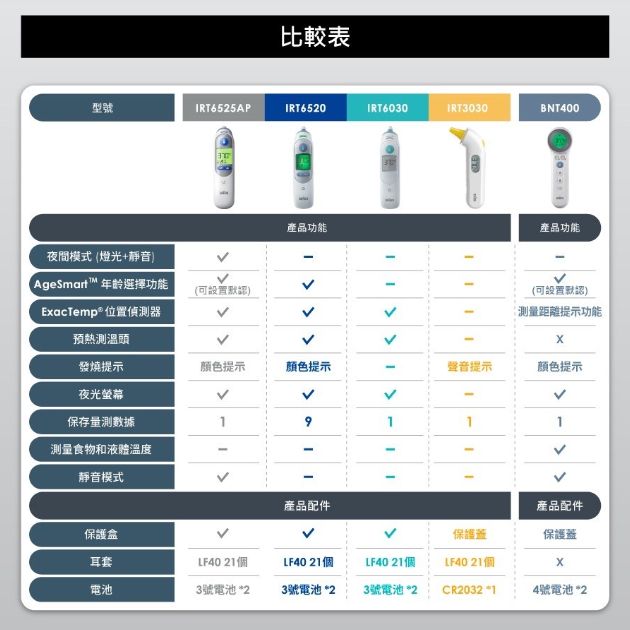 | 內容物 | 耳溫槍x1、收納盒x1(可連耳套一起收納)、3號(AA)電池x2、耳套x21 | |