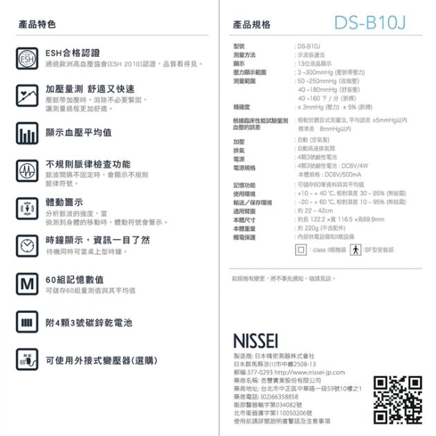 | 醫療器材許可證所載品名 | “日本精密”電子血壓計 | |