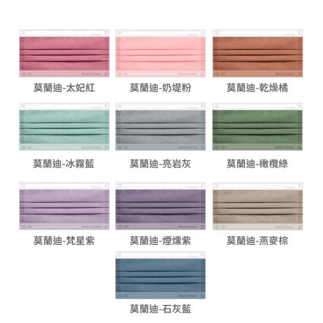 | 顏色 | 玫瑰粉/哈密橙/湖水綠/天空藍/羅蘭紫/奶堤粉/太妃紅/乾燥橘/燕麥棕/橄欖綠/冰霧藍/石灰藍/梵星紫/煙燻紫/亮岩灰/玄墨黑 | |