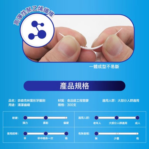 | 1. 請勿將產品置於高溫或陽光直射處 2. 幼童使用時,家長請陪同在旁 3. 使用口腔清潔用品時,使用假牙者須注意使用,不可用力拉扯 4. 消費者使用前應詳閱產品說明書 |