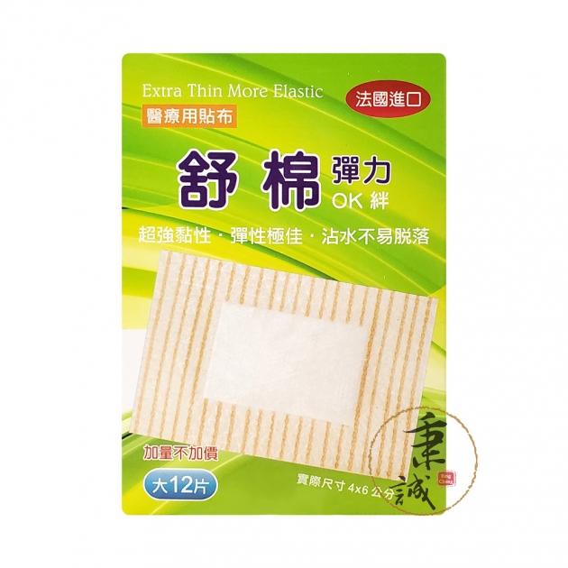 【商品規格】 極致防水 醫療用貼布 (滅菌) 產地:韓國 品牌:敷立舒 有效期間:五年 規格:小10片 / 中10片 / 大6片 舒眠 醫療用貼布 彈力OK絆 (未滅菌) 產地:法國 品牌:倍健 有效期間:五年 規格:小24片 / 大12片